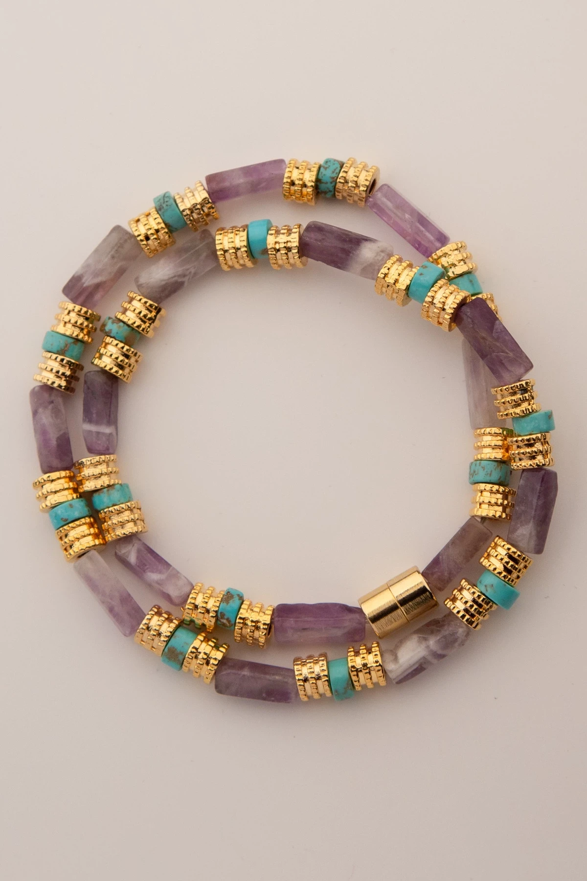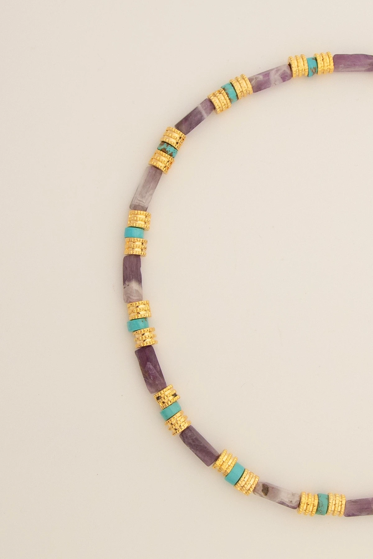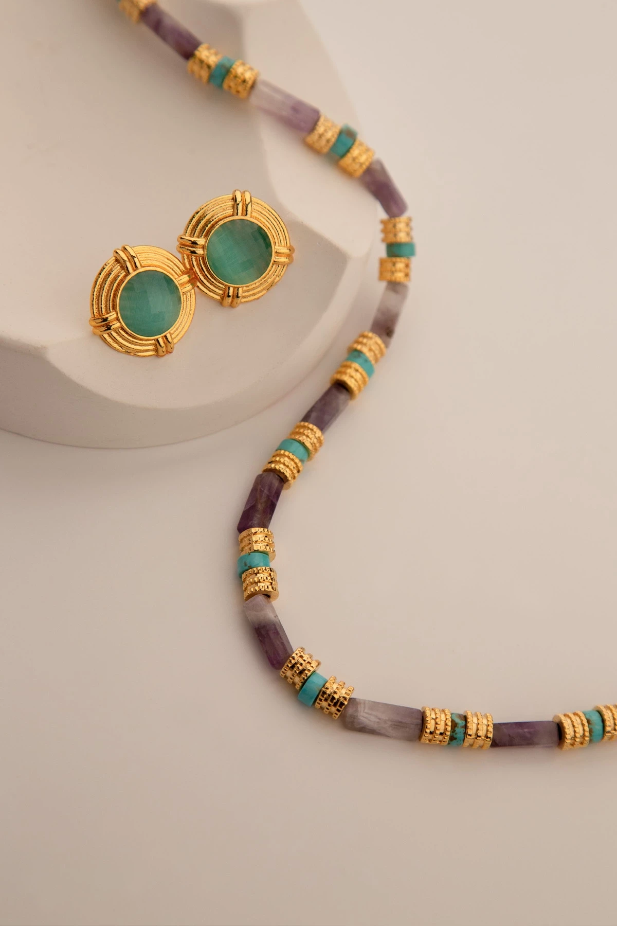 Ametist ve Turkuaz Taşlı Dizgi Kolye