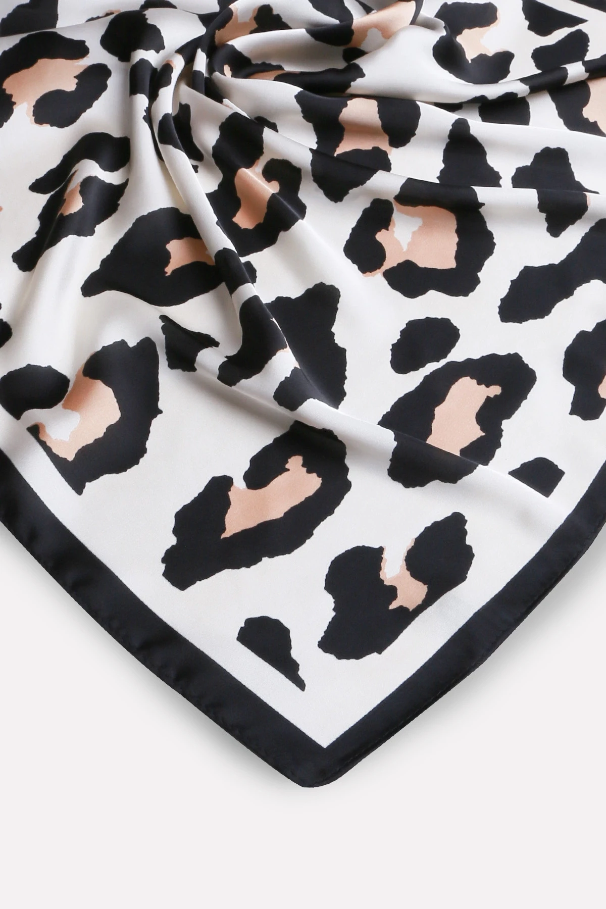Bej Leopar Desenli Saten Fular | 70 x 70 cm