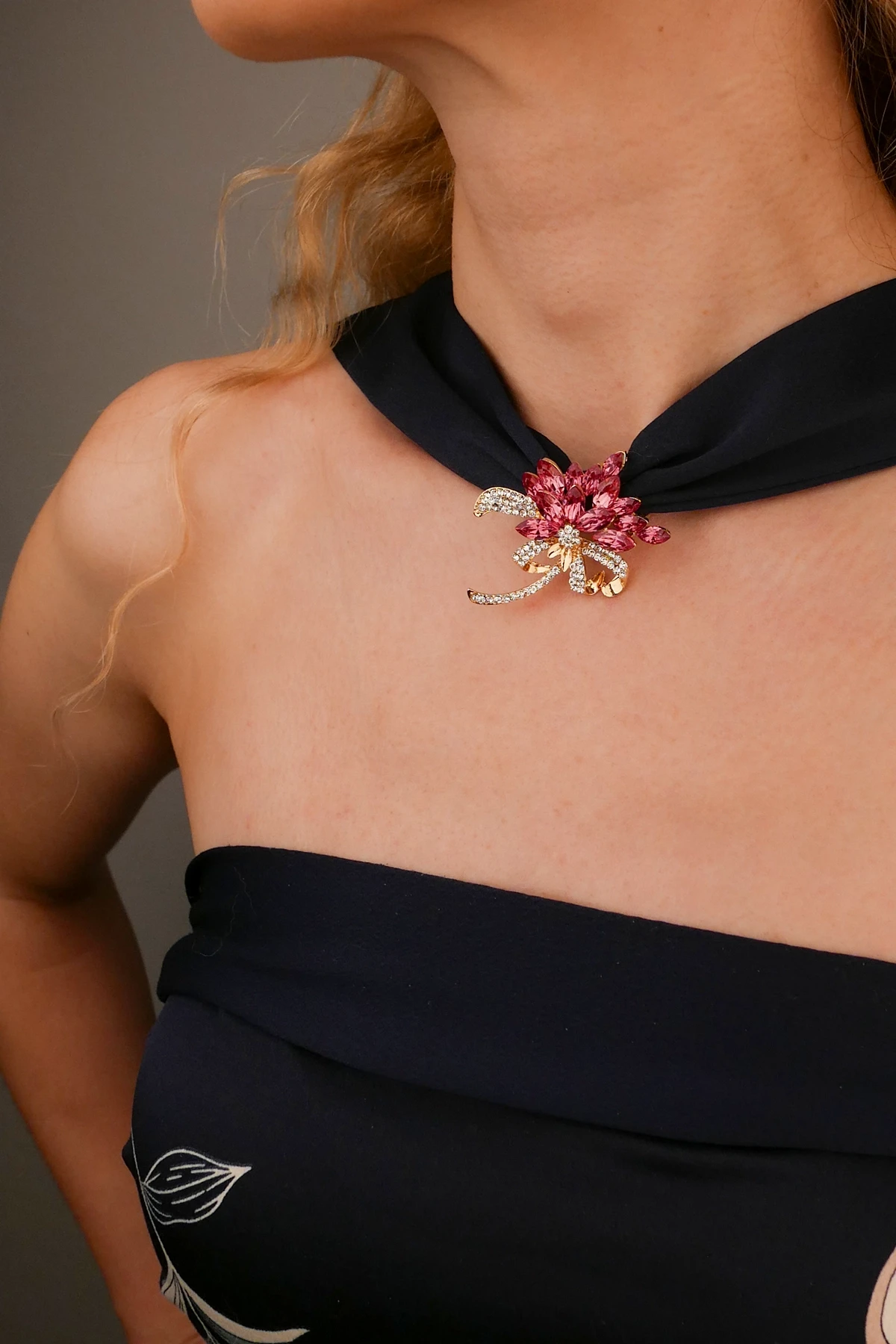 19. yüzyıl Art Nouveau stilinden ilham alan bu zarif broş, ışıltısıyla sizi kendine hayran bırakacak. Pembe zirkon taşlar ve kristal detaylar her anınıza parıltı katar. Özel davetlerde dikkatleri üzerinize çekmek ve şıklığınıza sofistike bir dokunuş eklemek için tasarlandı. Her bir taş, özenle yerleştirilerek hem modern hem de zamansız bir şıklık yaratır.