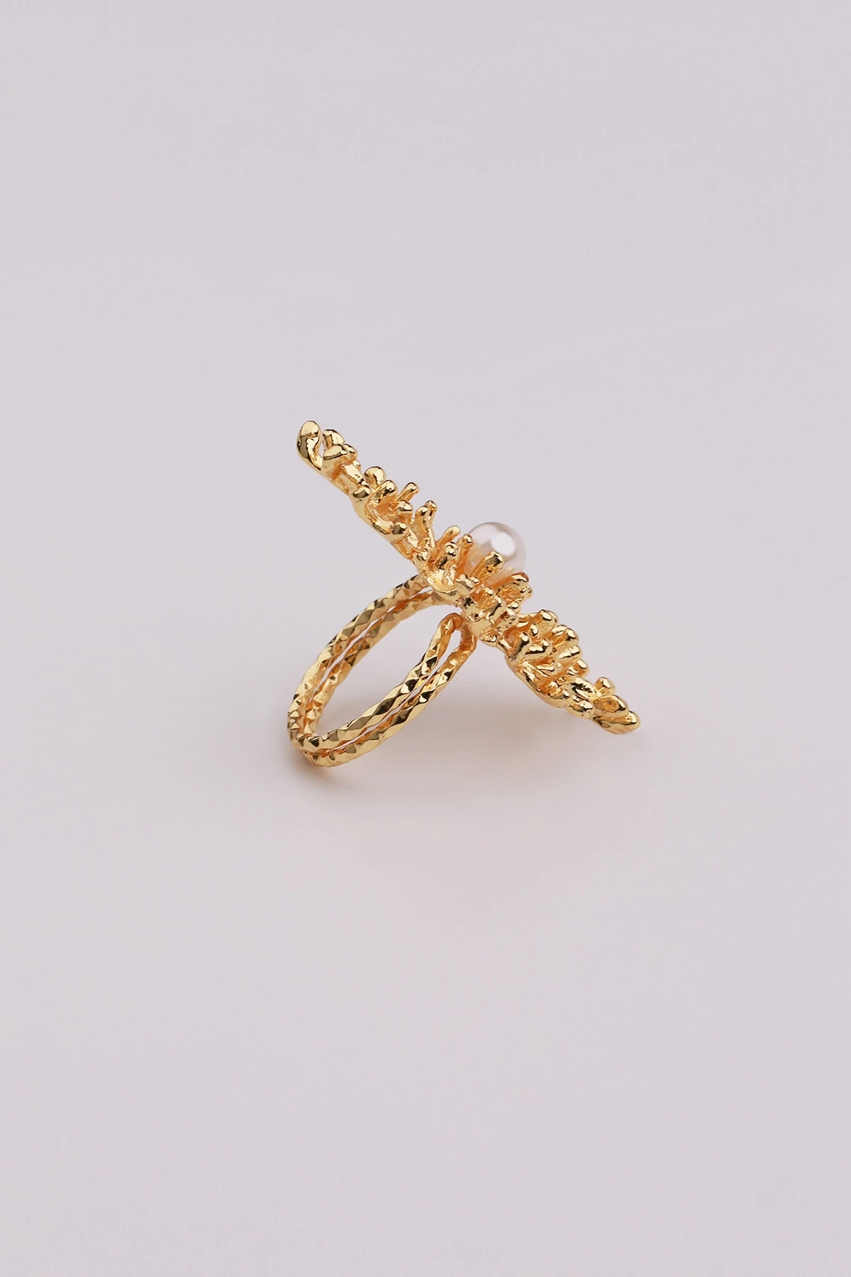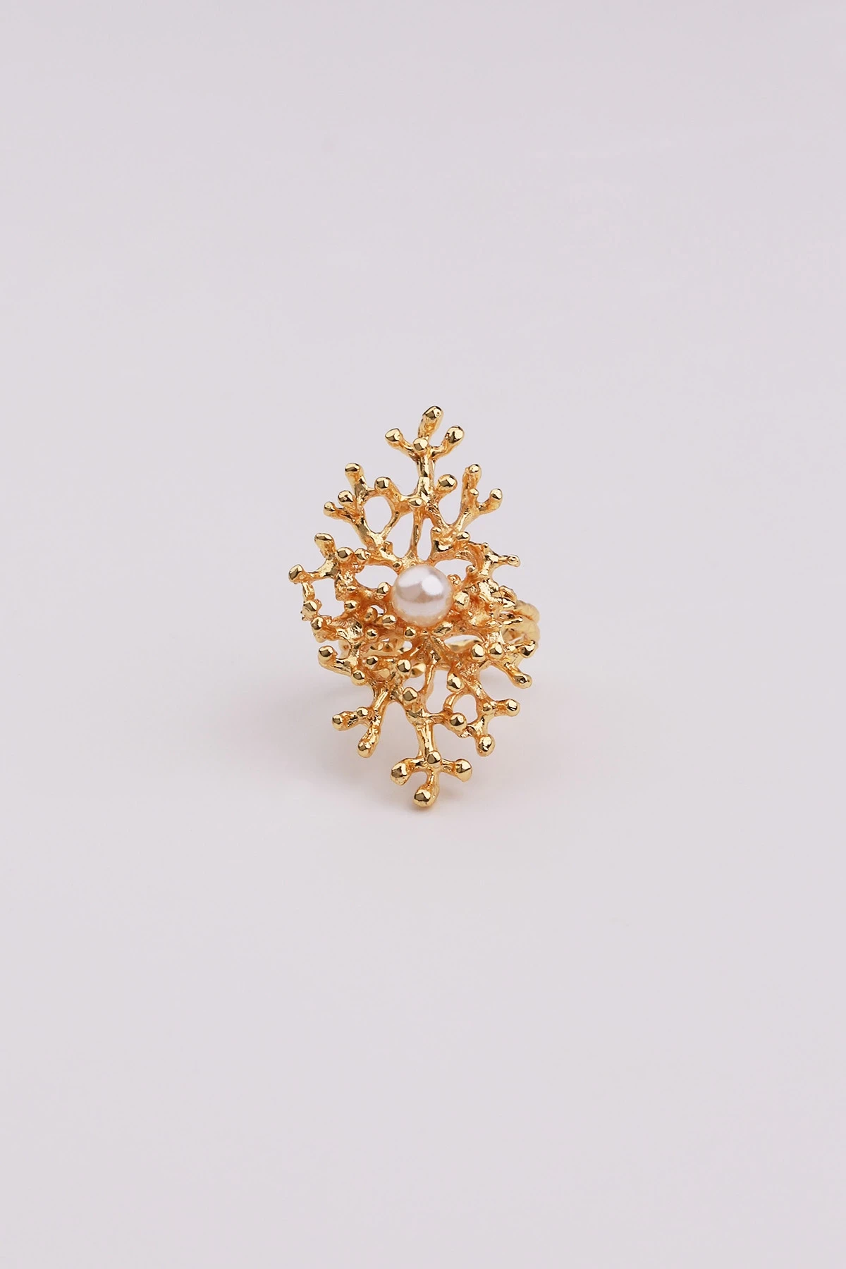 Denizin en derin ve sessiz katmanlarında yer alan doğal mercan resiflerinden ilham alınarak tasarladığımız bu yüzük, doğanın organik akışını modern bir sanat objesine dönüştürür. Ortasında yer alan doğal inci yüzüğün tasarımını mükemmel tamamlar ve ayarlanabilir formu sayesinde her parmağa konforla uyum sağlar. Özel kutulu sunumu ile kurumsal hediyelik, özel gün hediyesi arayanlar için mükemmel bir tercihtir.