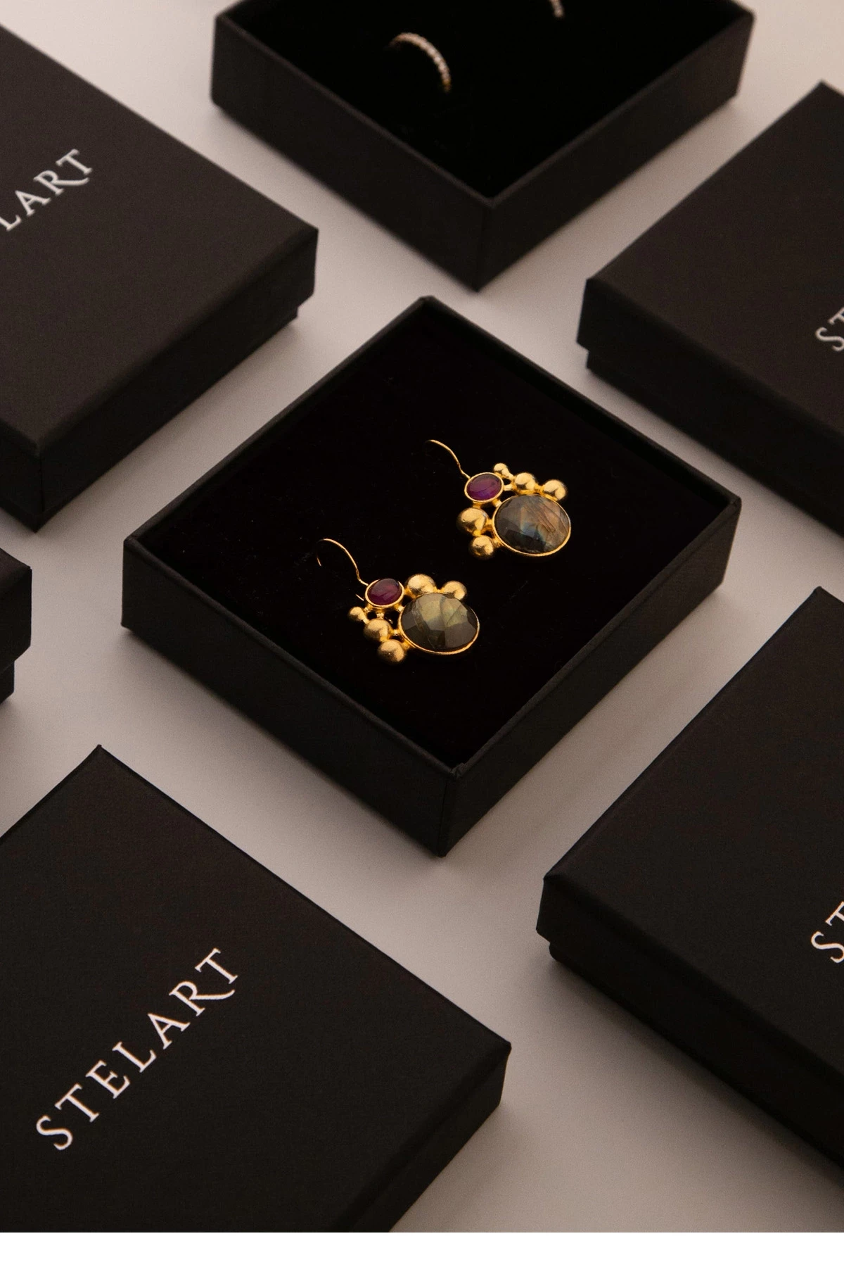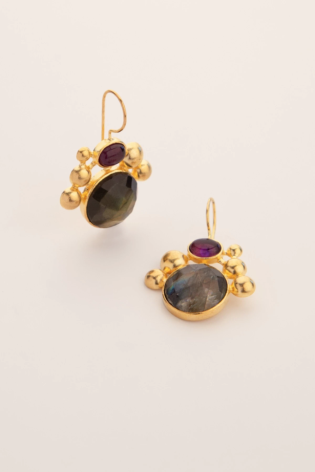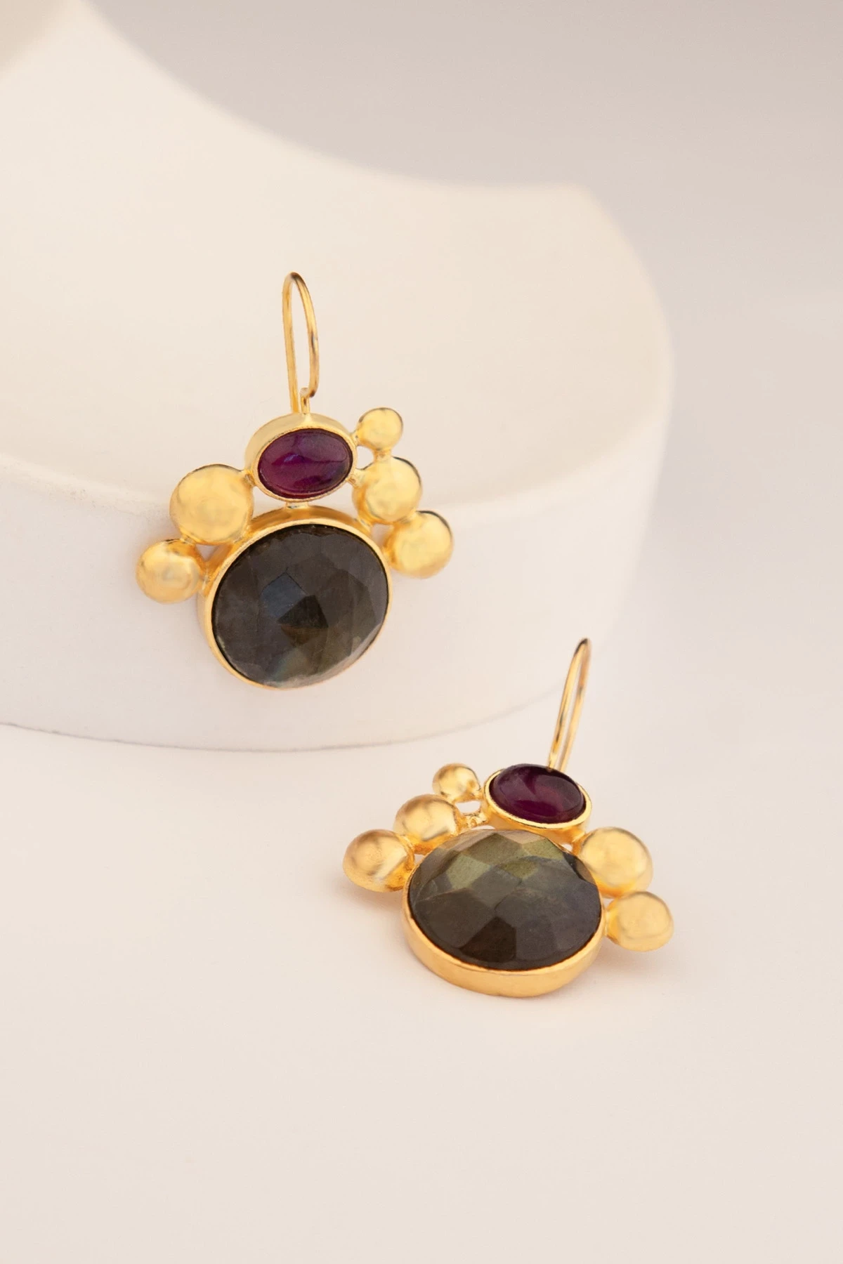 Kibele'nin Mirası - Turmalin Labradorit Taşlı Küpe