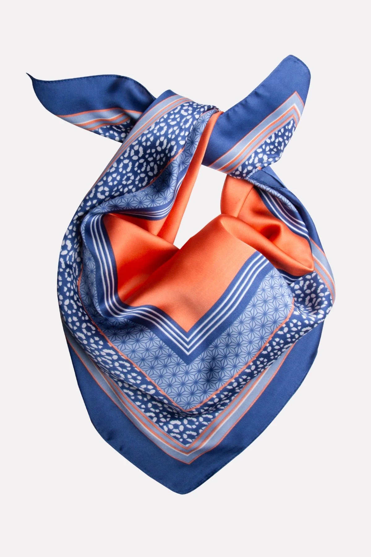 Turuncu Mavi Çiçek Desenli Fular | 70 x 70 cm